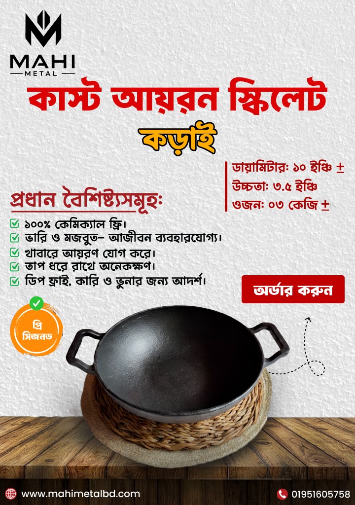 তাই নিরাপদ ও সুস্বাস্থ্যের চিন্তা মাথা রেখে ব্যবহার করুন কাস্ট আইরোন এর পাত্র।