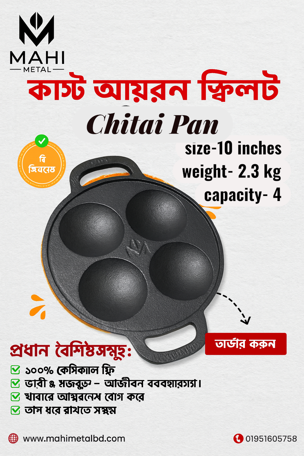 কাস্ট আইরোন চিতই প্যান